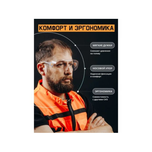 Модель с широким обзором и боковой защитой для ношения с корригирующими очками. Надеваются поверх собственных рецептурных очков работника. Широкая область орбитальной защиты, включая усиленную боковую защиту, обеспечивает надежную защиту глаз даже при ношении корригирующих очков.
