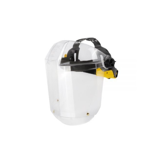 Для защиты лица при обработке металлов с использованием охлаждающих жидкостей, работах, связанных с возможным образованием осколков, в химических лабораториях при выполнении работ, связанных с разбрызгиванием агрессивных жидкостей, работе с пневмо- и электроинструментами. Прозрачный козырек из ударопрочного и термостойкого материала STRONG. Удлиненный экран из ударопрочного и термостойкого поликарбоната, защита от высокоскоростных летящих частиц с высокоэнергетическим ударом (190 мс). Наголовное крепление RAPID с мягким обтюратором. Оснащен подбородником для дополнительной защиты.
