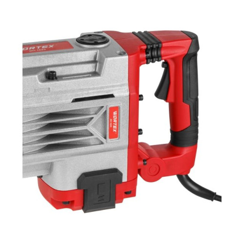 Отбойный молоток предназначен для разрушения кирпичных, каменных, бетонных или железобетонных конструкций, слома перекрытий, а также проделывания проемов. Рабочий механизм отбойного молотка расположен в ударопрочном металлическом корпусе. Имеет регулируемую D-образную дополнительную рукоятку для большего комфорта при работе. Патроном для крепления насадок выступает шестигранник 30 мм. В конструкции предусмотрена функция блокировки, что избавляет от необходимости удерживать нажатой кнопку пуска. Увеличенный размер сетевого кабеля до 3,8 м, что избавляет от необходимости работы с удлинителем. Имеет ребристые рукоятки для комфортного хвата, а также дополнительную защиту ротора. Поставляется в металлическом кейсе внутри картонной коробки.