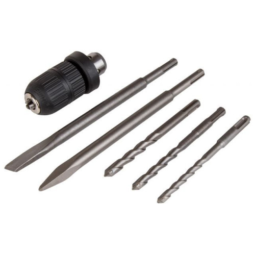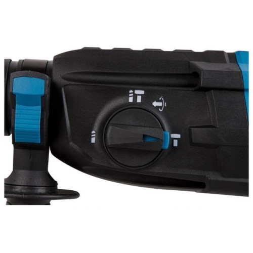 Мощный двигатель перфоратора обеспечивает высокую производительность инструмента. Наличие патрона SDS-plus в перфораторе позволяет сменить оснастку легко и быстро. Перфоратор имеет 4 режима работы: сверление, сверление с ударом, долбление, а также режим поворота долота. Переключение между режимами осуществляется с помощью специального переключателя. Перфоратор оснащен функцией реверса для легкого выкручивания сверла из материала.