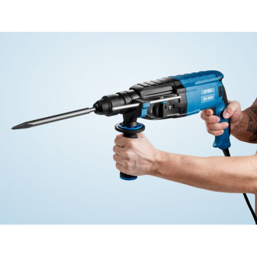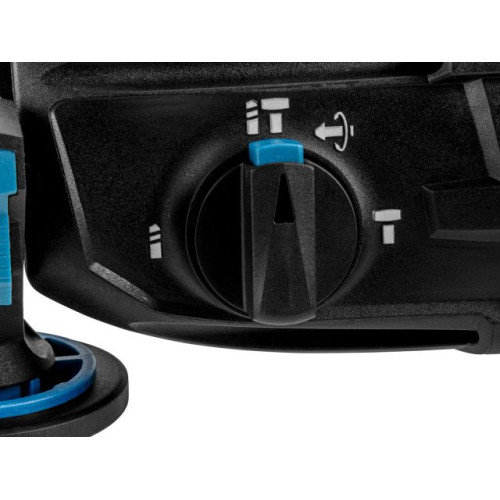 Мощный двигатель перфоратора обеспечивает высокую производительность инструмента. Наличие патрона SDS-plus в перфораторе позволяет сменить оснастку легко и быстро. Перфоратор имеет 4 режима работы: сверление, сверление с ударом, долбление, а также режим поворота долота. Переключение между режимами осуществляется с помощью специального переключателя. Перфоратор оснащен функцией реверса для легкого выкручивания сверла из материала.