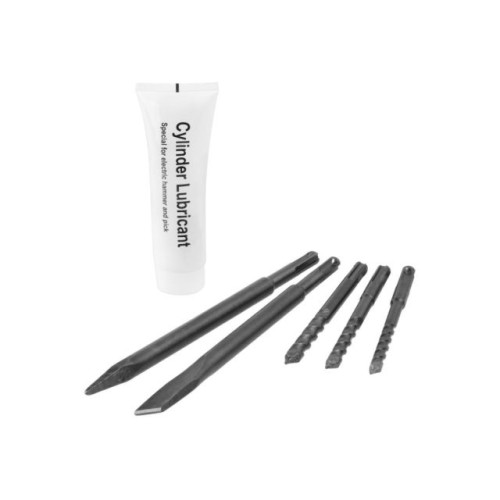 Перфоратор поставляется в надежном пластиковом кейсе вместе с 3 сверлами и 2 зубилами.