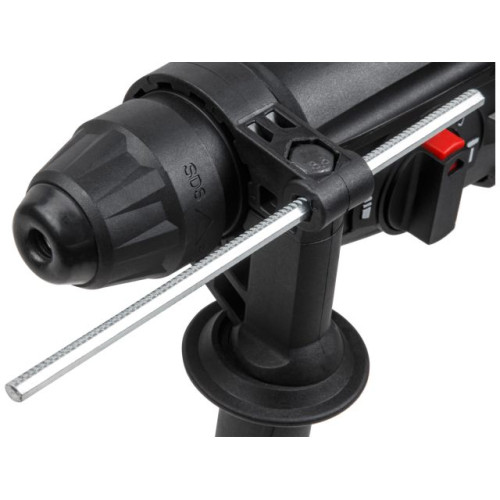 Высокая скорость при сверлении и высокая производительность при долблении благодаря двигателю в 800 Вт и энергии удара 2,6Дж. 3 Вида работы - сверление, сверление с ударом, долбление. Также имеется функция регулировки угла оснастки, реверс на щетках. Быстрорегулируемая эргономичная рукоятка легко настраивается в любом нужном положении. Патрон SDS.