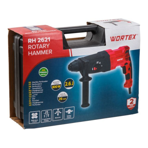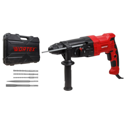 Перфоратор WORTEX RH 2621 в чем. + (2 зубила, 3 сверла) 800 Вт, 2.6 Дж, 3 реж., SDS-plus, Vario-Lock