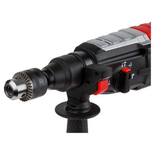 Высокая скорость при сверлении и высокая производительность при долблении благодаря двигателю в 850 Вт и энергии удара 3,2Дж. 3 Вида работы - сверление, сверление с ударом, долбление. Также имеется функция регулировки угла оснастки, реверс. Быстрорегулируемая эргономичная рукоятка легко настраивается в любом нужном положении. Патрон SDS.
