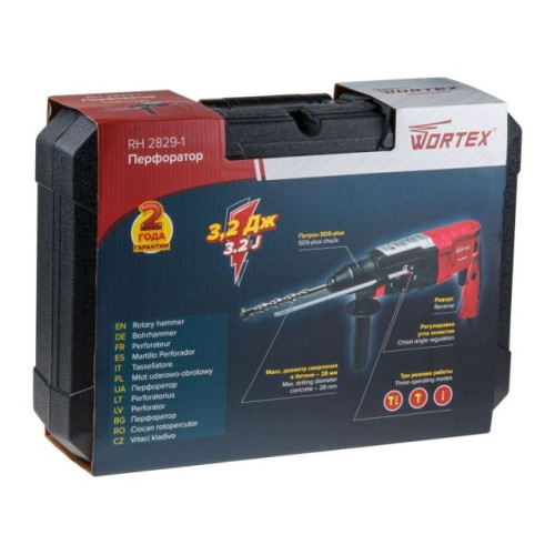 Перфоратор WORTEX RH 2829-1 в чем. + (2 зубила, 3 сверла)