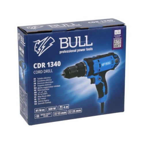 Дрель-шуруповерт BULL CDR 1340 в кор. 320 Вт, 41 Н*м, 2 скор., БЗП(мет.) 13 мм, 4 метра кабель