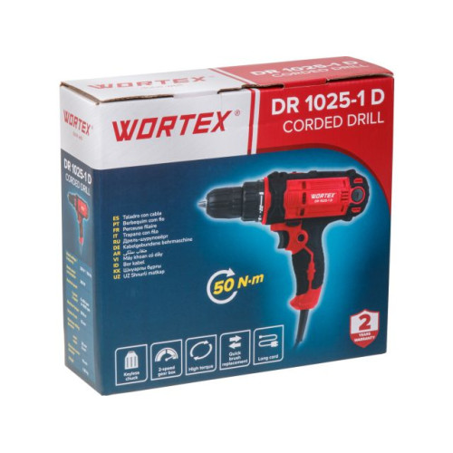 Дрель-шуруповерт WORTEX DR 1025-1 D в кор. 300 Вт, 50 Нм, 2 скор., быстрозажимной патрон: 10 мм