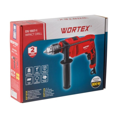 Дрель ударная WORTEX DS 1307-1 в кор. 800 Вт, 1 скор, 25 мм в дер., ключевой патрон 13 мм.