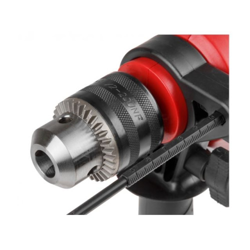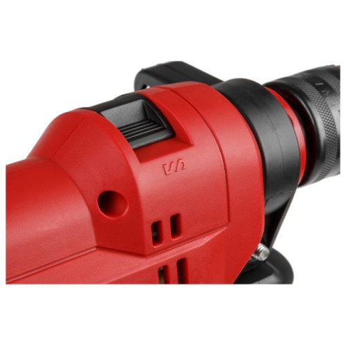 Дрель имеет медную обмотку двигателя, надежный металлический сверлильный патрон, дополнительная рукоятка обеспечивает надежный захват, имеется регулировка скорости, ограничитель глубины, реверс и блокировка кнопки включения.