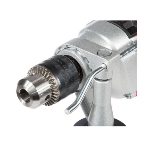 Мощная дрель с высокой производительностью, имеет компактную конструкцию, металлический корпус редуктора, обеспечивает долгий срок службы, надежный металлический сверлильный патрон, наличие регулировки оборотов, реверса, кнопки блокировки кнопки включения, так же имеется рукоятка с ограничителем глубины.