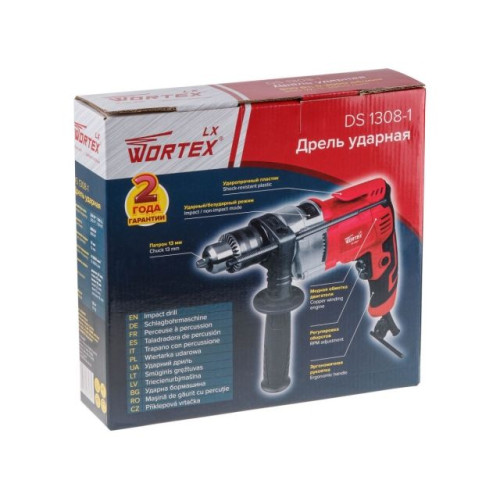 Дрель ударная Wortex LX DS 1308-1 в кор. 800 Вт, 1 скор., 25 мм в дер. ключевой патрон 13 мм.