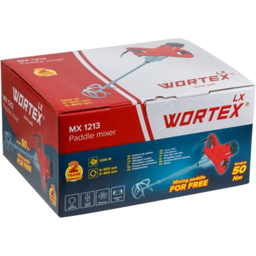 Миксер строительный WORTEX LX MX 1213 в кор. 1200 Вт, 2 скор., M14, рег.об. + насадка