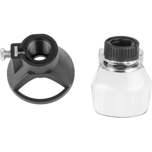 Поставляется в брендированном кейсе с металлическими замками совместно с оснасткой, гибким валом и штативом, что позволит приступить к работе сразу же после покупки инструмента. Также в комплекте есть насадка для вертикальной обработки заготовок и защитный кожух. В комплект входят отрезные круги по металлу и дереву, полировальные войлочные круги, шлифовальные круги, сверла, шлифовальные камни и т. д., всего 175 предметов.