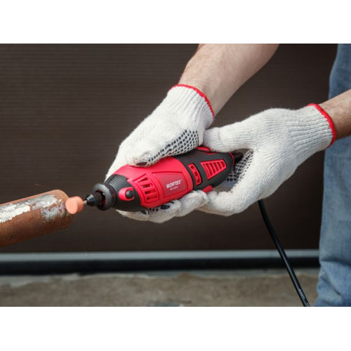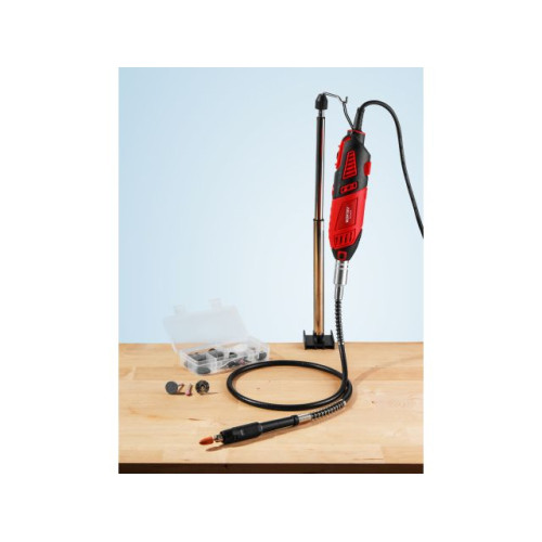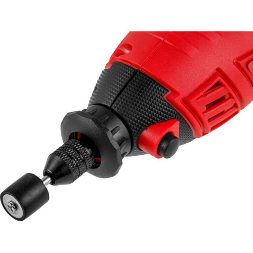 Гравер предназначен для выполнения тонких работ высокой точности (шлифовка, полировка, сверление, резка) по таким материалам, как дерево, камень, стекло, плитка и др. Компактный гравер снабжен шестиступенчатой функцией регулировки оборотов. Для удобства пользователя предусмотрена быстрая замена щеток. Мягкая накладка на корпусе обеспечивает надежный и комфортный захват. Гравер также оснащен скобой для подвеса, что позволяет использовать его совместно со штативом и гибким валом. Обладает кнопкой блокировки вала для эффективной и быстрой замены оснастки, а также двумя цангами 2,4 и 3,2 мм. Поставляется в брендированном кейсе, а также совместно с оснасткой, что позволит приступить к работе сразу же после покупки инструмента. Малый вес гравера обеспечит наименьшую утомляемость при работе. Отличительным преимуществом данной модели является наличие в комплекте быстрозажимного патрона (мультипатрон), что позволяет максимально быстро и без дополнительных усилий менять оснастку, а также подбирать оснастку с разными диаметрами хвостовиков (нету точной привязки к диаметру, как это устроено с цанговыми патронами) от 0,8 мм до 3,2 мм.