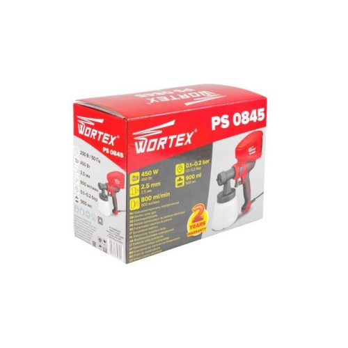 Краскораспылитель электрический WORTEX PS 0845 в кор. 450 Вт, 800 мл/мин, 0.9 л бак