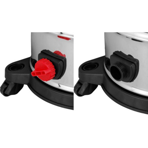 Несколько степеней фильтрации обеспечивается за счет многоразового губчатого фильтра, а так же фильтра тонкой очистки (HEPA), который идет в комплекте. Возможно также использовать с одноразовыми бумажными пакетами. Пылесос также оснащен специальным отверстием для слива воды из бака. А легкий и прочный корпус из нержавеющей стали обеспечит долгий срок службы инструмента. Функция выдува. Также на модели присутсвует телескопическая штанга. Обладает 3-позиционным выключателем для синхронной работы с электроинструментом.