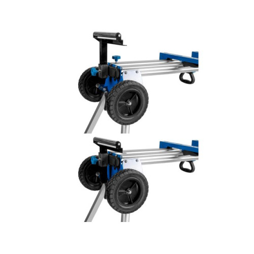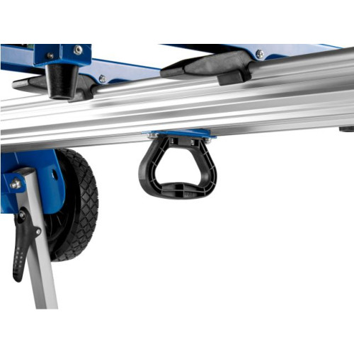 Стол оснащен большими обрезиненными колесами диаметром 190 мм. Для удобства транспортировки есть 2 рукояти.