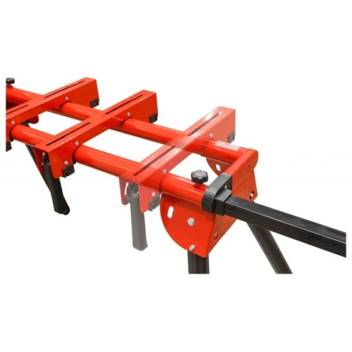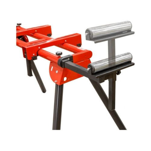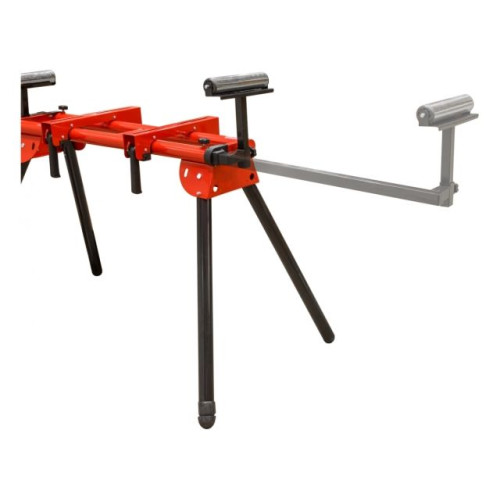 Стол WORTEX MT 7625 используется для установки на него торцовочных пил и работы с длинными заготовками. Представляет собой прочную и надежную конструкцию из стальных труб с перемещаемыми кронштейнами для крепления пилы. Кронштейны фиксируются в одно нажатие. Также имеются дополнительные роликовые опоры, которые имеют регулировку по высоте и длине с максимальным вылетом ролика 81.5 см (2.5 метра макс. длина стола с опорами). Выдерживает до 150 кг нагрузки. Стол имеет складную конструкцию и при хранении не занимает много места.