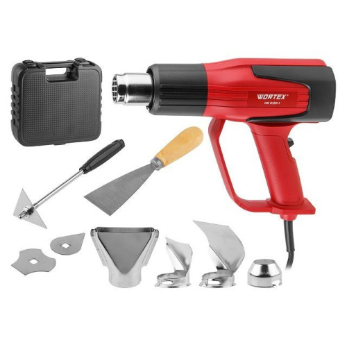 Термовоздуходувка WORTEX HG 6120-1 в чем. + набор сопл 2000 Вт, 2 режима, 60-600 °С, LCD