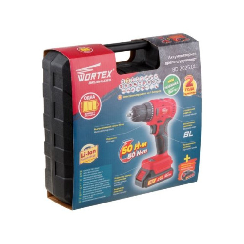 Аккум. дрель-шуруповерт WORTEX BD 2025 DLi в чем. ALL1 XLT БЕСЩЕТ, 18 В, 50 Н*м, 2х2 А*ч, БЗП 10 мм