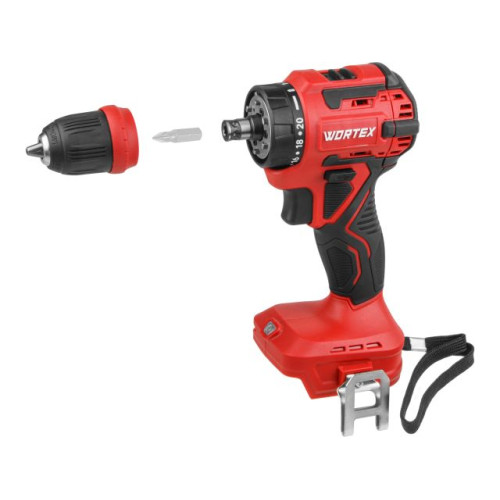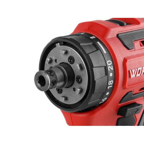 Компактный шуруповерт WORTEX оснащен производительным двигателем и надежным редуктором, что позволяет ему развивать усилие в 55 Н*м.