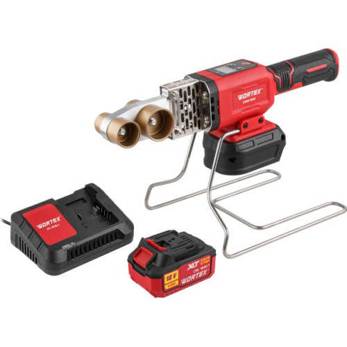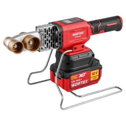 Аккум. сварочный аппарат для полимерных труб WORTEX CWM 1834 ALL1 XLT SET с акб и зу+3 насадки