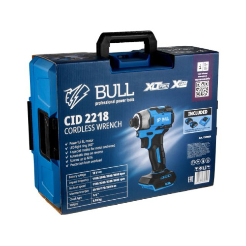 Аккум. ударный гайковерт/винтоверт BULL CID 2218 Xcase, XLTpro, SET, БЕСЩЕТ., 18 В, 220 Н*м, 2х4 А*ч
