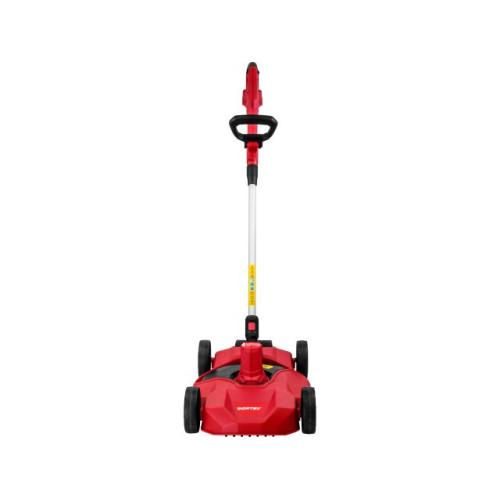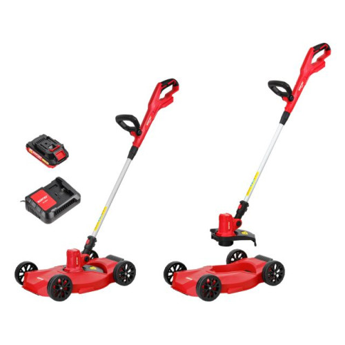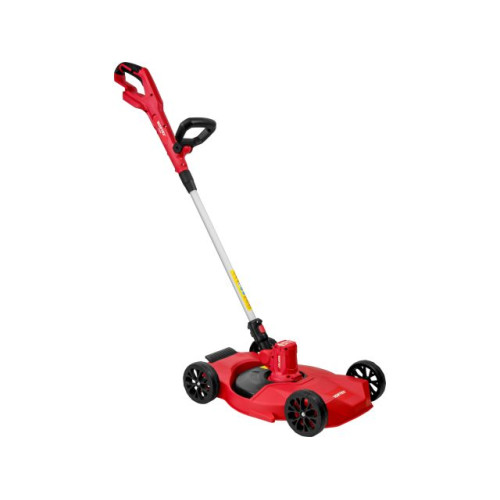 Данная модель поставляется с тележкой, с помощью которой можно легко преобразовать триммер в газонокосилку без использования дополнительных инструментов! Высоту реза можно регулировать от 35 до 55 мм путём переставления колёс на нужный уровень.