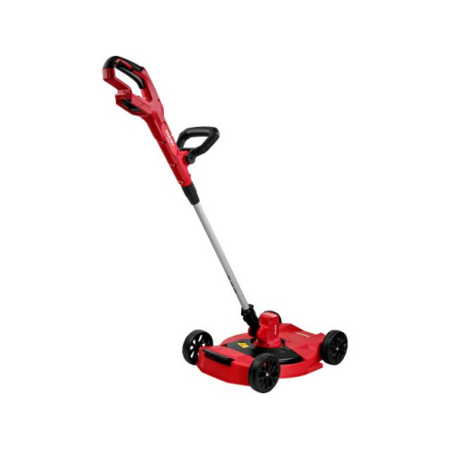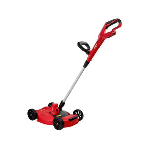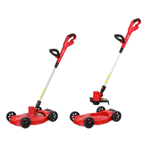 Данная модель поставляется с тележкой, с помощью которой можно легко преобразовать триммер в газонокосилку без использования дополнительных инструментов! Высоту реза можно регулировать от 35 до 55 мм путём переставления колёс на нужный уровень.