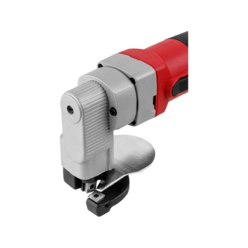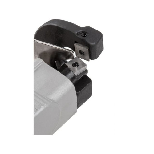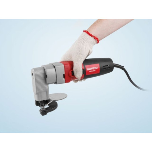 Используются для резки металла, представленного листами: сталь, цветные металлы, нержавеющая сталь. Принцип работы электрических листовых ножниц заключается в движении верхнего лезвия, в то время как нижнее остается неподвижным. Лист металла делится ножницами на две части, разрез получается узкий, стружка не образуется. Модель имеет ползунковый переключатель, а также защитный козырек для повышенной безопасности оператора. Ножи представлены четырьмя режущими кромками. Поставляется в кейсе со щупами и тремя шестигранными ключами для регулировки ножей.