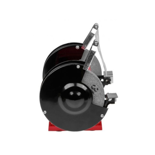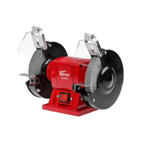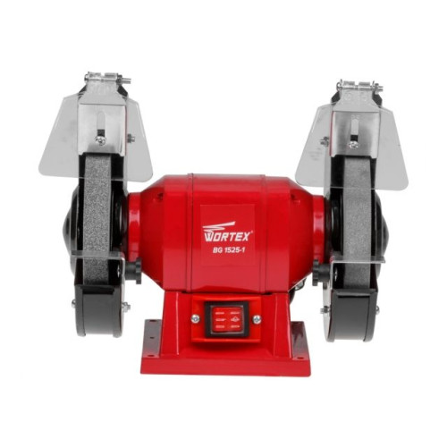 Модель BG 1525-1 покрыта термостойкой краской, оснащена защитными щитками и металлическими кожухами для безопасного использования. Также, станок имеет устойчивое основание и пылезащищенный выключатель, а два установленных круга имеют разную зернистость (мелкую и крупную).