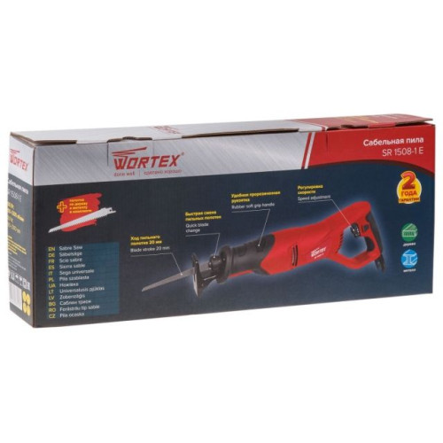 Сабельная пила WORTEX SR 1508-1 E в кор. + 2 пильных полотна 800 Вт, дер. 150 мм, ход 20 мм, рег.об.