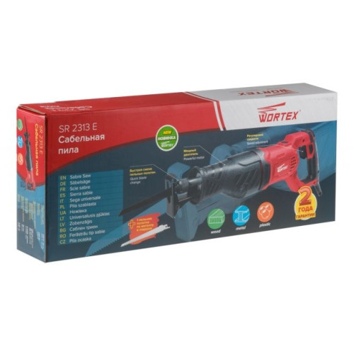 Сабельная пила WORTEX SR 2313 E в кор. + 2 пильных полотна 1100 Вт, дер. 230 мм, ход 28 мм, рег.об.