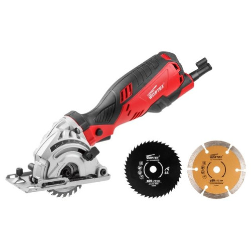 Циркулярная пила WORTEX HS 2865 в кор. + 3 пильных диска 650 Вт, 89 мм, до 28 мм