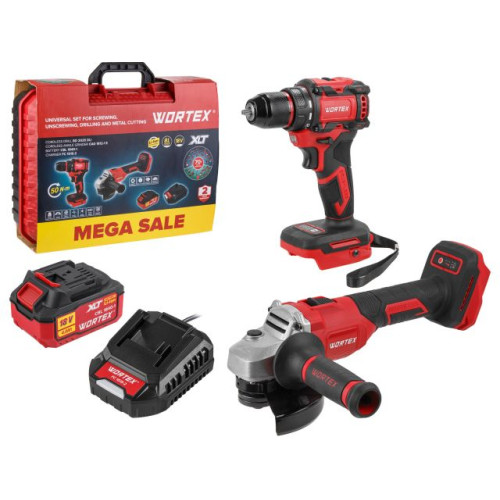 Набор аккум. инструмента WORTEX дрель-шуруповерт + ушм в чем. ALL1 XLT SET СКИДКА -19%