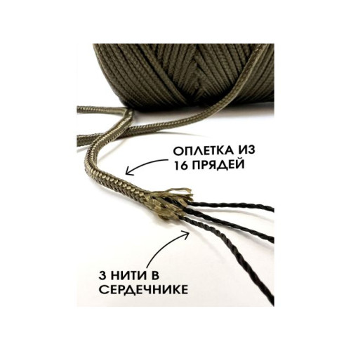 Паракорд с сердечником (3 нити) d2мм хаки 50м
