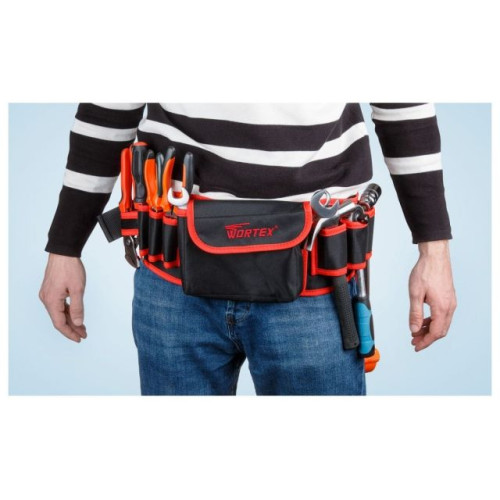 Пояс для инструмента нейлоновый WORTEX BB 5609 предназначен для переноски инструмента и оснастки. Представляет возможность иметь необходимый предмет в зоне прямого доступа. Экономит время при высотных работах и в остальных случаях, когда нужно преодолеть расстояние за понадобившейся оснасткой. Изготавливается из прочного износостойкого нейлона. Крепится на бедрах или талии застежкой типа фастекс. Конструкция подразумевает наличие большого центрального подсумка (140х180 мм), а так же 7 отделений для крепежа и мелкогабаритного инструмента.