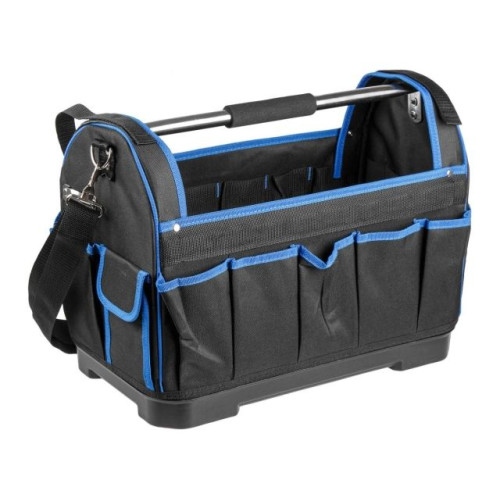 Сумка для инструмента Bull WB 4035 предназначена для переноски, хранения и удобного использования различных инструментов. Изготовлена из прочной нейлоновой ткани. Металлическая ручка с мягкой насадкой предназначена для комфортной переноски инструмента. Регулируемый ремень для переноски на плече. Пластиковое дно способствует повышенной безопасности инструмента в случае падения сумки, а также защитит инструмент внутри от намокания, если сумка стоит мокрой поверхности. Имеет 11 внешних карманов для хранения и 20 внутренних отсеков для переноса мелкой оснастки.