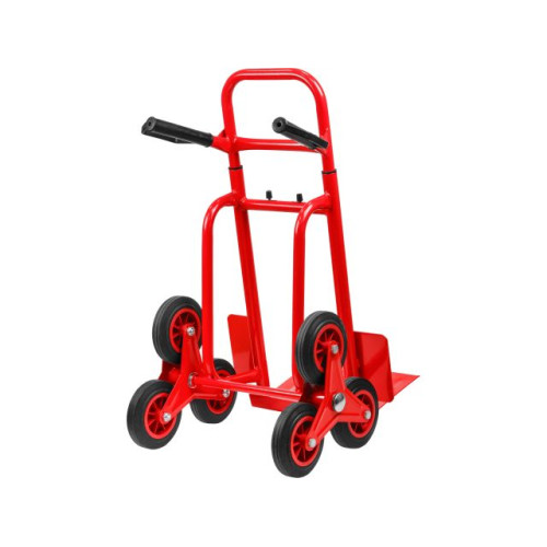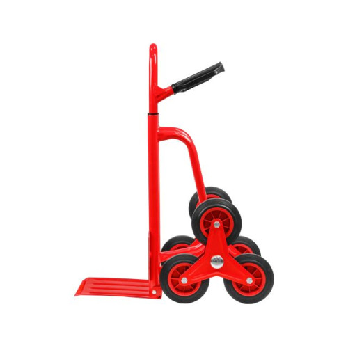 Тележка имеет 6-ти колесную базу, что позволяет перемещать по лестнице груз весом до 100 кг и на ровных плоскостях до 250 кг.