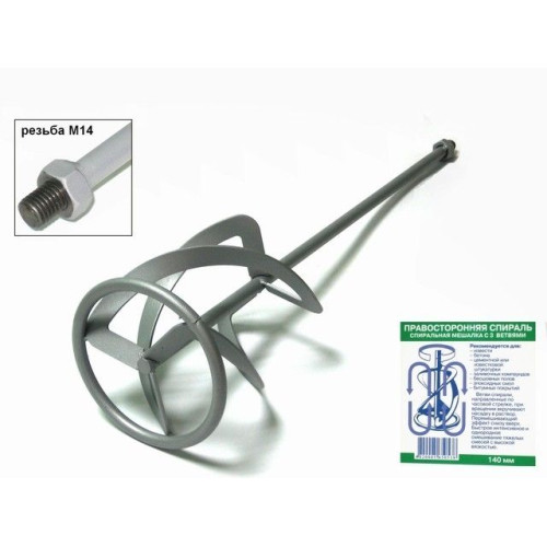Ветви спирали, направленные по часовой стрелке, при вращении вкручивают насадку в раствор.