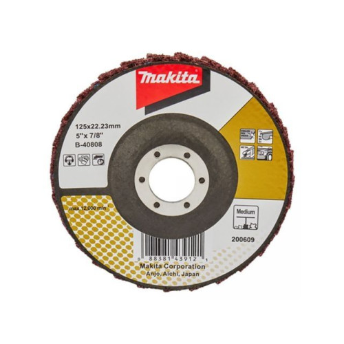Круг лепестковый 125x22,23 мм конический MAKITA (B-40808) подходит для полировки материалов после шлифовки, например, для удаления обесцвечивания сварных швов.