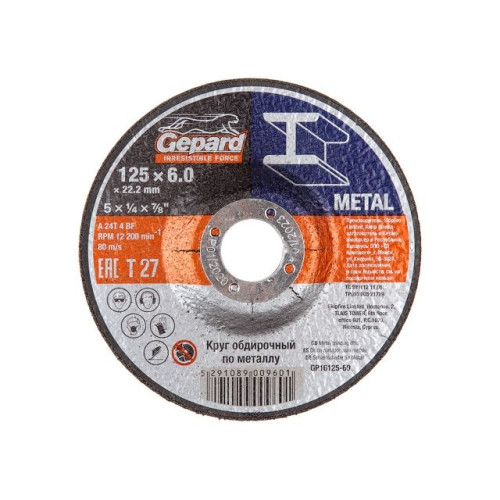 Круг обдирочный 125х6x22.2 мм для металла и нерж. стали GEPARD
