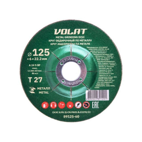 Круг обдирочный 125х6x22.2 мм для металла ВОЛАТ