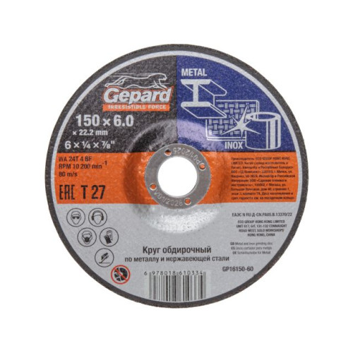 Круг обдирочный 150х6x22.2 мм для металла и нерж. стали GEPARD