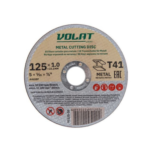 Круг отрезной 125х1.0x22.2 мм для металла ВОЛАТ LIGHT