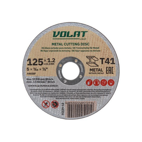 Круг отрезной 125х1.2x22.2 мм для металла ВОЛАТ LIGHT