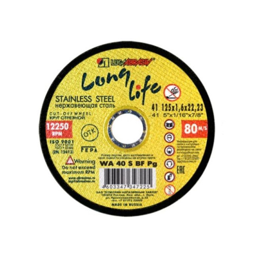 Круг отрезной 125х1.6x22.2 мм для нерж. стали (LL) LUGAABRASIV