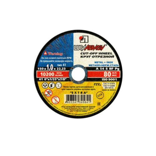 Круг отрезной 150х1.0x22.2 мм для металла LUGAABRASIV
