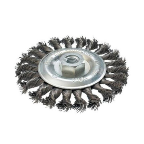 Дисковая проволочная щетка Makita для шлифмашины, диаметр 125 мм, толщина проволоки 0.5 мм, крепление М14. Применяется для очистки в тяжелых условиях